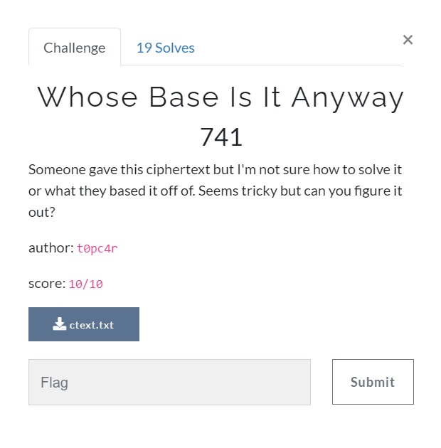 As it transpires from the description, it is necessary to convert the string contained in [ctext.txt](ctext.txt) into various bases, in succession.